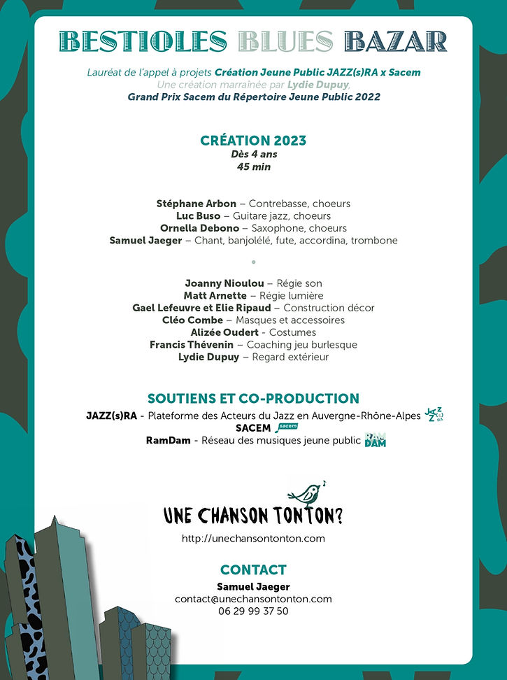 Chansons à la plume aiguisée, quartet jazz un poil déjanté, Bestioles Blues Bazar est un spectacle pour toute la famille, dès 4 ans.